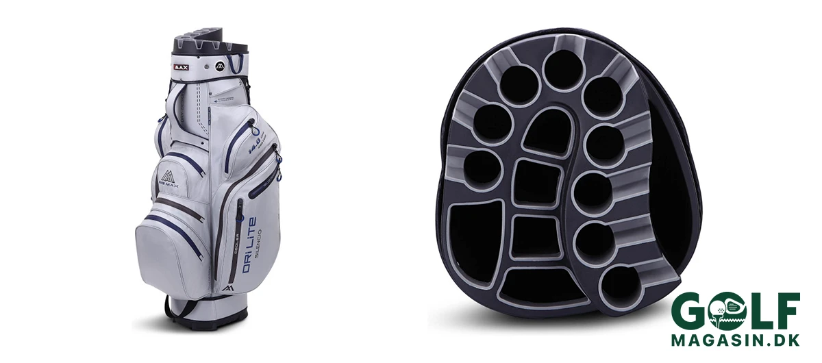 Big Max har specialiseret sig i praktiske løsninger til vogne, og Dri Lite Silencio 2 er et godt eksempel. Her er fokus på ro omkring køllerne. Den 14-vejs top med fuld længde opdeling holder udstyret adskilt, så skafterne ikke klirrer mod hinanden under runden.